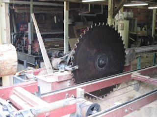 Ray is extremely excited over something . . . Is it the overload of work he's had lately, or the absolutely squelching hot days, or -- no, it must be his new sawmill! That's right. After about 2 years of waiting, watching, and praying, the Lord has provided the perfect one just for him in just the perfect timing! We are all excited with him because that means he can begin milling the lumber for our cabin. Yay!!! He wanted pictures posted so that everyone could admire his beauty.